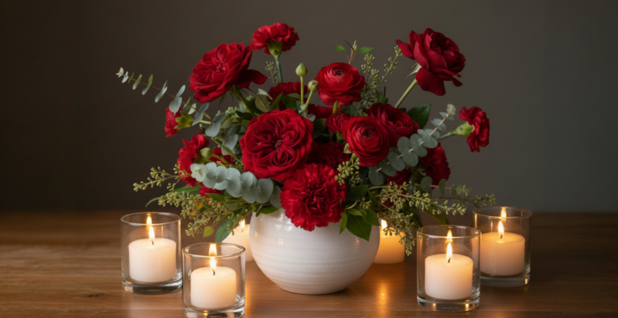 Pre-Order Deal: Valentine's Day Bundle - A Dozen Roses or Premium Flower Bouquet plus Candle and Lip Balm